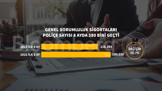 Genel sorumluluk sigortaları poliçe sayısı 2022'nin ilk 8 ayında 280 bini geçerken, aynı dönemde pirim üretimi yüzde 79 oranında artarak 3,4 milyar olarak gerçekleşti.