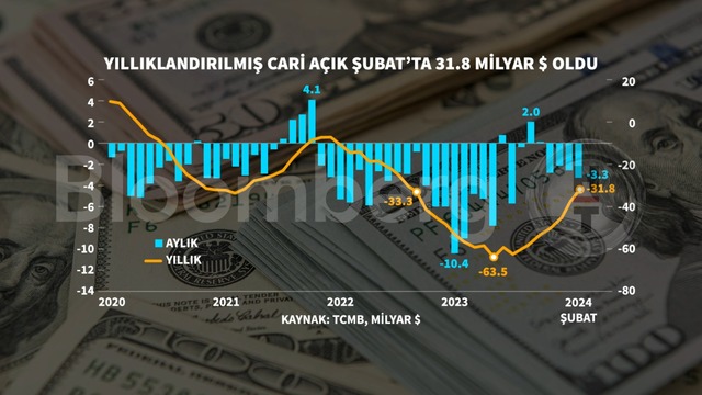 Şubat ayında yıllıklandırılmış cari açık da 31,8 milyar dolar olarak kaydedildi.