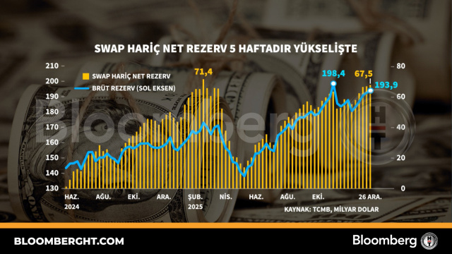 Bloomberg HT Grafik Swap hariç net rezerv 5 haftadır yükselişte Swap hariç net rezerv 5 haftadır yükselişte Giriş: 02 Ocak 2026, Cuma 19:00 Güncelleme: 02 Ocak 2026, Cuma 19:00