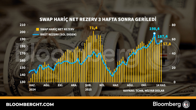 Bloomberg HT Grafik Swap hariç net rezerv üç hafta sonra geriledi Swap hariç net rezerv üç hafta sonra geriledi Giriş: 20 Kasım 2025, Perşembe 19:34 Güncelleme: 20 Kasım 2025, Perşembe 19:34
