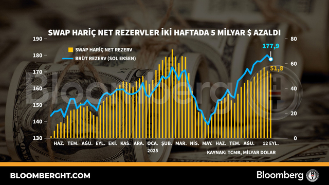 Bloomberg HTGrafikSwap hariç net rezervler iki haftada beş milyar dolar azaldı