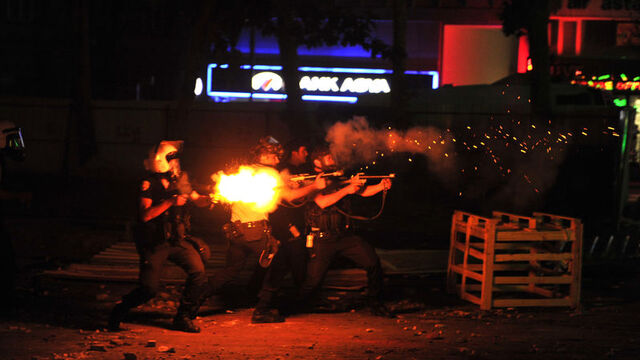 İzmir'de; Gezi Parkı'ndaki polis müdahalesini prostesto eden grup Konak yönüne yürüyüşe geçti. Polis, grubun önünü kesip gaz bombaları ve tazyikli su ile müdahale etti. Protestocu grup ile polis arasında çatışmalar devam ediyor.