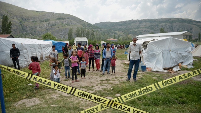 İlçe Emniyet Müdürlüğü ekipleri, bölgede geniş güvenlik önlemi aldı. Sağlık ekiplerince de çadırlarda kalanlardan test için örnek alındı.