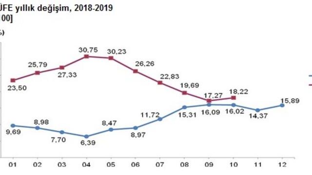 Buna göre, ekimde bir önceki aya göre yüzde 1,70 artışla 158,38 değerini alan Tarım ÜFE, geçen yılın aralık ayına göre yüzde 11,64, geçen yılın aynı ayına göre yüzde 18,22 ve 12 aylık ortalamalara göre yüzde 22,64 arttı.