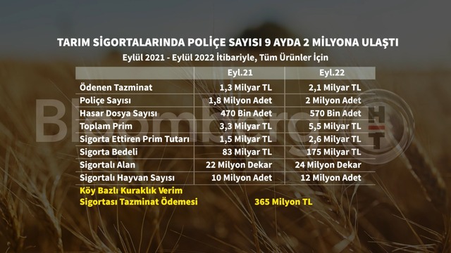 Çiftçilerin son yıllarda daha bilinçli olduğunu dile getiren Günal tarımın küresel iklim değişiklerinin yakından etkilediği bir kesim burası. Bu nedenle gelişme rakamlara da yansıdığını, 3 milyon dekar alanın kuraklığa karşı sigortalandığını aktardı. Günal, toplam hasarlı alana bakıldığında yurt dışında ya da Avrupa'da kadar büyük hasarlar yaşanmamasına karşın, sigorta bedellerindeki artış nedeniyle ödenen hasar miktarının arttığını dile getirdi.