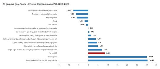 Türkiye İstatistik Kurumu (TÜİK) tarafından yayımlanan "Tarım Ürünleri Üretici Fiyat Endeksi" verileri, tarımda üretici enflasyonunun 2026 yılı Ocak ayında güçlü artışını sürdürdüğünü ortaya koydu.