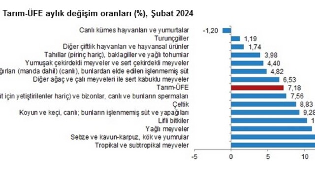 Tarım ürünleri üretici fiyat endeksi (Tarım-ÜFE) Şubat'ta artışını sürdürdü.