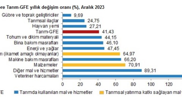Tarımsal girdi fiyat endeksi (Tarım-GFE) Aralık'ta aylık bazda yüzde 2,62 artarken, yıllık bazda yüzde 41,43 yükseldi