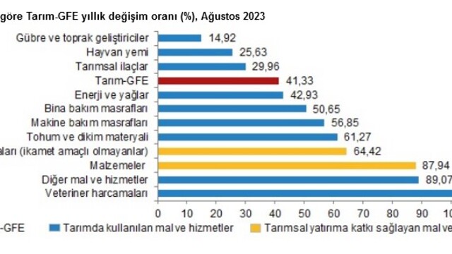 Tarım-GFE, Ağustos'ta aylık bazda yüzde 6,94 artarken, yıllık bazda yüzde 41,33 yükseldi.