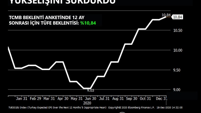 Enflasyon beklentilerindeki yükseliş Aralık ayında da devam etti.