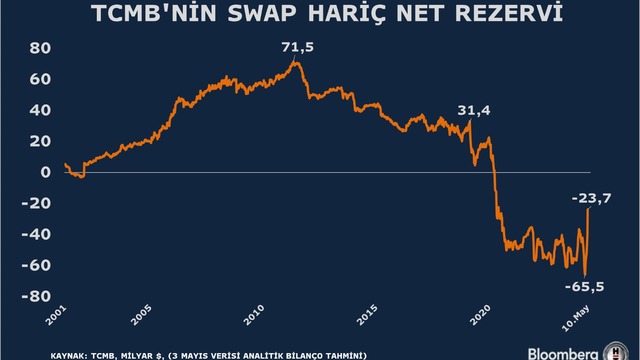 10 Mayıs itibariyle TCMB'nin swap hariç net rezervi eksi 23,7 milyar dolar seviyesine geldi. Bu da swap hariç net rezervlerde Mayıs 2020'den itibaren en iyi seviye olarak kaydedildi.
