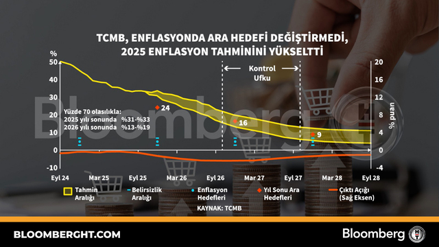 Bloomberg HTGrafikTCMB, enflasyonda ara hedefi değiştirmedi, 2025 enflasyon tahminini yükseltti