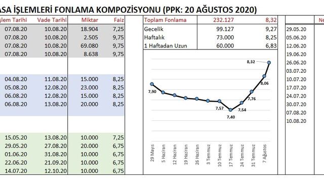TCMB, Pazartesi günü bir hafta vadeli repo ihalesi açmayarak ağırlıklı ortalama fonlama maliyetini (AOFM) artırmak adına yapmış olduğu adımlara bir yenisini ekledi. Böylece fonlama faizi ilk kez Pazartesi günü yüzde 8.25 seviyesindeki politika faizinin üzerine çıktı.