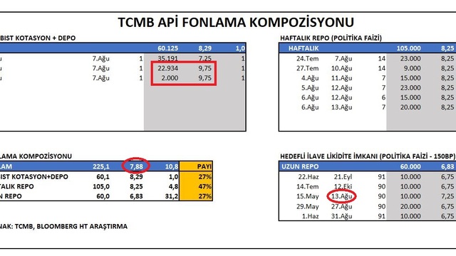 Temmuz enfasyon raporunda yıl sonu enflasyon tahminini %7,4’den %8,9’a yükselten Türkiye Cumhuriyet Merkez Bankası (TCMB) piyasaya vermiş olduğu Türk Lirası’nın (TL) ağırlıklı ortalama fonlama maliyetini (AOFM) yükseltmeye devam ediyor.
