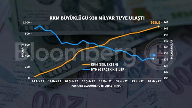 Rezervlere etkisi açısından da dikkate alınan kur korumalı mevduatların toplam büyüklüğü 3 Haziran haftasında 931 milyar TL oldu. Bir önceki hafta bu hesaplarda 904,1 milyar TL birikmişti.