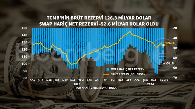 Swap hariç net rezervler geçen hafta eksi 52,6 milyar dolar oldu. Bir önceki hafta swap hariç net rezervler eksi 54,7 milyar dolar olarak gerçekleşmişti.