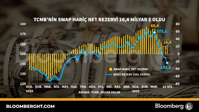 Bloomberg HTGrafikTCMB'ni̇n swap hari̇ç net rezervi̇ 16,4 mi̇lyar dolar oldu