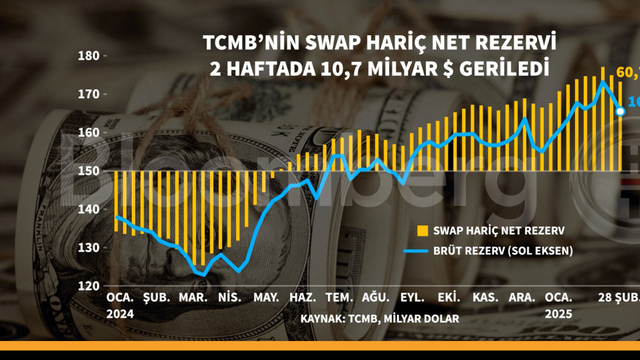 TCMB'nin swap hariç net rezervi 2 haftada 10,7 milyar dolar geriledi