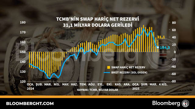 Bloomberg HTGrafikTCMB'ni̇n swap hari̇ç net rezervi̇ 31,1 milyar dolara geriledi