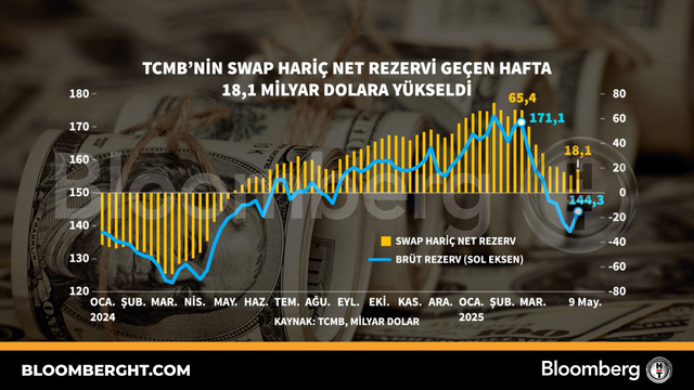 Bloomberg HTGrafikTCMB'ni̇n swap hari̇ç net rezervi̇ geçen hafta 18,1 mi̇lyar dolara yükseldi̇