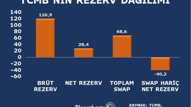 Swap hariç net rezerv ise aynı haftada eksi 40,2 milyar dolar olarak kaydedildi.