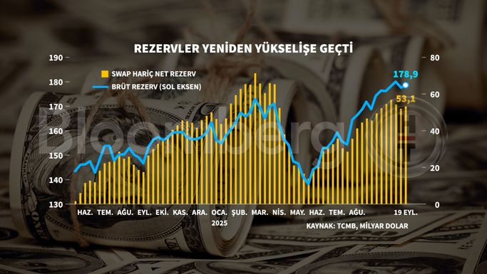 Türkiye Cumhuriyet Merkez Bankası'nın (TCMB) brüt rezervi geçen haftaya göre yüzde 0,6 artarak 178,9 milyar dolar düzeyinde gerçekleşti.