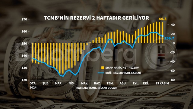 TCMB verilerine göre 15 Kasım haftası itibariyle brüt rezervler 156,7 milyar dolar olarak kaydedildi. Bir önceki hafta rezervler 157,3 milyar dolar düzeyindeydi.