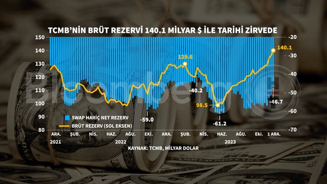 TCMB verilerine göre, 1 Aralık haftası itibariyle brüt rezervler 140,1 milyar dolar ile tarihi zirveye çıktı.