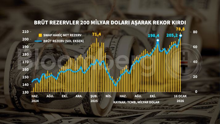 Türkiye Cumhuriyet Merkez Bankası'nın brüt rezervleri 205 milyar doları aşarak yeni zirvesini gördü.