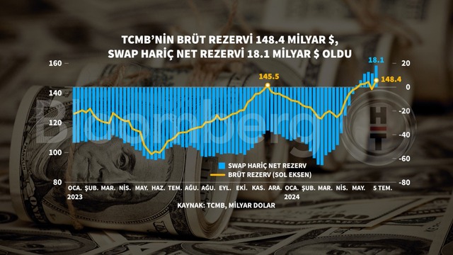 Swap hariç net rezervler tarafında hızlı toparlanma dikkat çekti. 5 Temmuz haftasında swap hariç net rezervler 18,1 milyar dolar oldu. Bir önceki hafta swap hariç net rezervler 11,6 milyar dolar olarak kaydedilmişti.