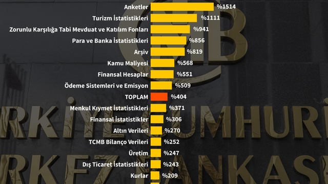 EVDS’yi ziyaret edenlerin sayısı ise iki yılda yüzde 404 artış gösterirken, en az artış kaydeden sayfa faiz istatistikleri oldu.
