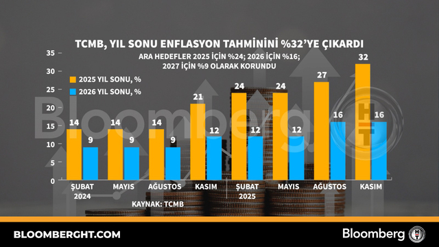 Bloomberg HTGrafikTCMB, yıl sonu enflasyon tahminini yüzde 32'ye çıkardı
