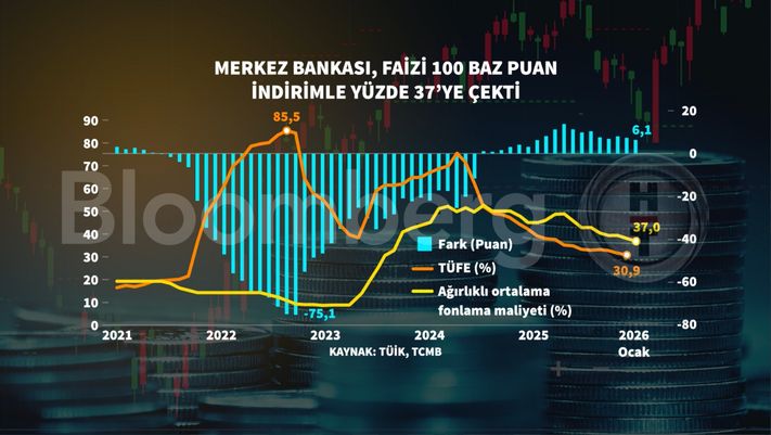 Türkiye Cumhuriyet Merkez Bankası politika faizini 100 baz puan indirimle yüzde 37'ye çekti.