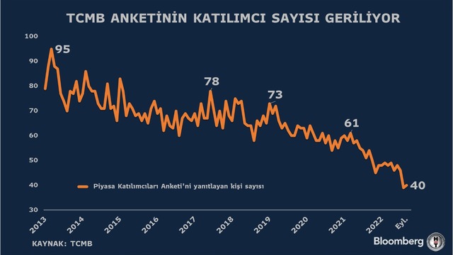 Böylelikle daha önce Beklenti Anketi ismiyle yapılan araştırmanın katılımcı sayısındaki düşüş eğilimi sürmüş oldu. 2013’te TCMB’nin sorularına yanıt veren kişi sayısı 95’i bulmuştu.