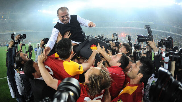 ''Bir kupa mı aldık, iki kupa mı aldık. Şampiyon mu olduk, 3 gün sonra bir maç daha oynar mıyız düşünceleriyle Galatasaray takımı şampiyon oldu'' ifadelerini kullanan Terim, ''Kendilerine söz verdiğim taraftarlarımıza, elimi göğsüme koyarak selam gönderiyorum. Onlara söz vermiştim. Bu başarıda çok büyük katkıları var'' diye konuştu.