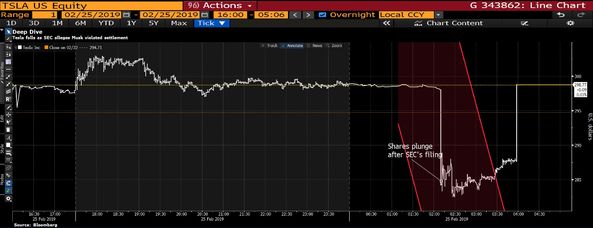 SEC şikayetinin ardından Musk, resmi Twitter hesabından yaptığı bir paylaşımda, Wall Street Journal'ın ilgili haberine cevap vererek "SEC Tesla'nın söz konusu üretimin 350 bin ile 500 bin arasında olacağına ilişkin gelir belgesini okumayı unutmuş. Utanç verici." dedi.