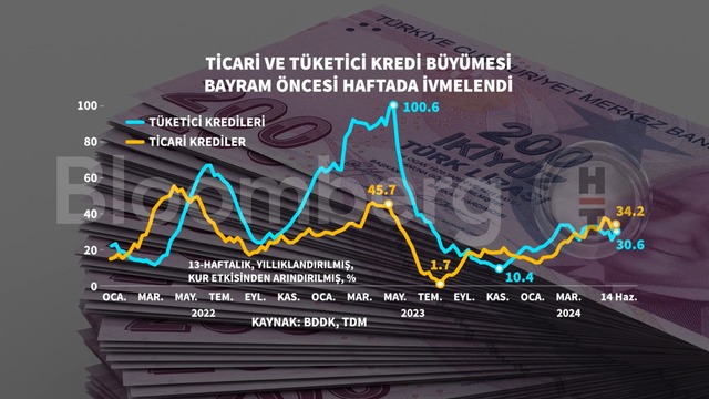 Ticari ve tüketici kredi büyümesinde 31 Mayıs haftasından itibaren görülen yavaşlama bayram öncesi yerini ivmelenmeye bıraktı.