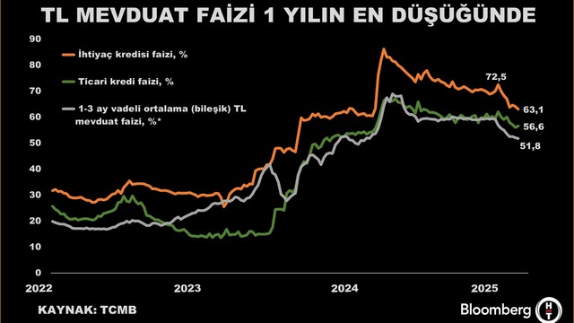 21 Şubat haftasında 1-3 ay vadeli ortalama bileşik TL mevduat faizi yüzde 51,8 seviyesiyle bir yılın en düşük noktasını gördü. 1-3 aylık mevduat faizleri yüzde 60'lar seviyesine kadar yükselmişti.