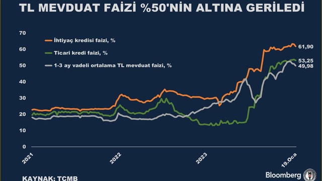 TL mevduat faizi yüzde 50'nin altına indi