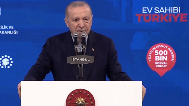 Konuşmasında sosyal konut hamlesinin kapsamını genişlettiklerini vurgulayan Cumhurbaşkanı Erdoğan, mülkiyet edindirme projelerinin yanı sıra kiralama sisteminin de devreye alınacağını belirtti.