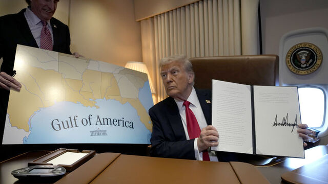 Trump, Air Force One uçağında, Meksika Körfezi üzerinde seyahat ederken 9 Şubat'ı "Amerika Körfezi Günü" ilan eden bildiriye imza attı.
