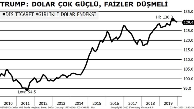 Dünya Ekonomik Forumu'na katılmak için bulunduğu Davos'ta konuşan Trump, "Dolar çok, çok güçlü," dedi ve bunun kulağa güzel geldiğini, birçok yönden iyi olduğunu, ancak imalat sektörü dikkate alındığında çok kötü olduğunu sözlerine ekledi.