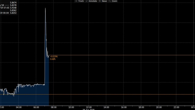 Bloomberg News’in kaynaklara dayandırdığı yaptırım haberinin ardından Dolar/TL yüzde 1.5 yükselerek 5.9171 seviyesine kadar çıktıktan sonra 5.88’lere çekildi.