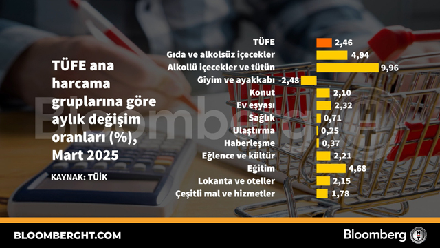 Bloomberg HTGrafikTÜFE ana harcama gruplarına göre aylık değişim oranları
