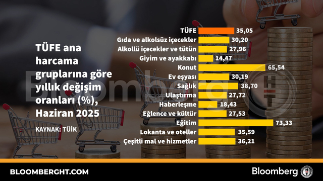 Bloomberg HTGrafikTÜFE ana harcama gruplarına göre yıllık değişim oranları