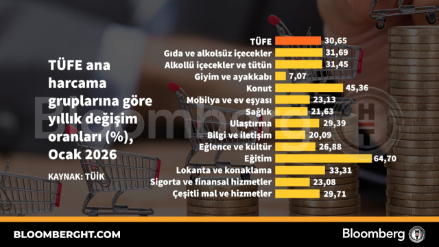 Bloomberg HTGrafikTÜFE ana harcama gruplarına göre yıllık değişim oranları