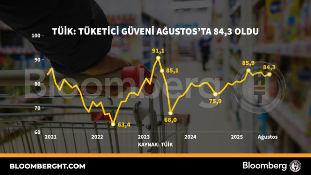 Bloomberg HT Grafik TÜİK: Tüketi̇ci̇ güveni̇ Ağustos'ta 84,3 oldu TÜİK: Tüketici güveni Ağustos'ta 84,3 oldu 21 Ağustos 2025, Perşembe 18:33 Güncelleme : 21 Ağustos 2025, Perşembe 18:33
