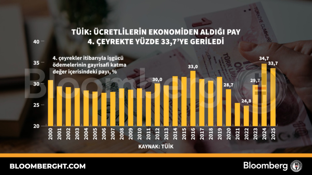 Bloomberg HT Grafik TÜİK: Ücretlilerin ekonomiden aldığı pay 4. çeyrekte yüzde 33,7'ye geriledi TÜİK: Ücretlilerin ekonomiden aldığı pay 4. çeyrekte yüzde 33,7'ye geriledi 02 Mart 2026, 20:10 Güncelleme : 02 Mart 2026, 20:10 İlgili Haberler Perakende satışlar Aralık'ta gücünü korudu Dünyanın en büyük nikel madeni üretimi kısacak Venezuela'dan İsrail'e yıllar sonra ilk petrol sevkiyatı Küresel piyasalarda Fed indirimi beklentileri yükseldi Yapay zeka endişesi bu kez varlık yöneticilerini vurdu ABD'de İran tankerleri konusunda temkinli duruş Altın ve gümüşte yön yukarı "Bitcoin Balinaları" yeniden alım yapıyor Fed’de oy hakkı bulunan iki yeni üye faizlerin sabit tutulması gerektiğini savundu Petrol, ABD–İran görüşmeleri ve jeopolitik belirsizlikle yatay seyretti Cumhurbaşkanı kararıyla iki bakanlıkta görev değişimi Trump: Müzakereler başarısız olursa bölgeye ikinci uçak gemisini gönderebiliriz Perakende satışlar Aralık'ta gücünü korudu Dünyanın en büyük nikel madeni üretimi kısacak Venezuela'dan İsrail'e yıllar sonra ilk petrol sevkiyatı Küresel piyasalarda Fed indirimi beklentileri yükseldi Yapay zeka endişesi bu kez varlık yöneticilerini vurdu ABD'de İran tankerleri konusunda temkinli duruş Altın ve gümüşte yön yukarı "Bitcoin Balinaları" yeniden alım yapıyor Fed’de oy hakkı bulunan iki yeni üye faizlerin sabit tutulması gerektiğini savundu Petrol, ABD–İran görüşmeleri ve jeopolitik belirsizlikle yatay seyretti Cumhurbaşkanı kararıyla iki bakanlıkta görev değişimi Trump: Müzakereler başarısız olursa bölgeye ikinci uçak gemisini gönderebiliriz