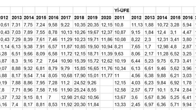 TÜFE ve Yİ-ÜFE oranları şöyle: