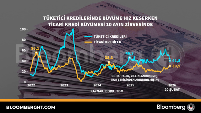 Bloomberg HT Grafik Tüketici kredilerinde büyüme hız keserken ticari kredi büyümesi 10 ayın zirvesinde
